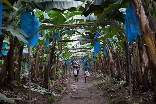 People often assume that the banana fruit grows on trees, however, the banana is a high herb which can grow up to 15 metres. There are over 1000 different varieties of bananas growing around the world, subdivided into 50 groups. Some are sweet, like the Cavendish variety, which is the most common and most widely exported. It is named after Musa Cavendishii and was first grown at Chatsworth House in the UK in 1830. This variety of banana is currently under threat from a disease called Sigatoka, which has reduced banana yields by 40% every year.